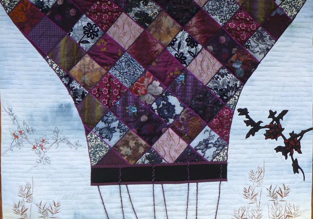 Needless to say I chose to interpret in my own way, I am not overly keen on people and I wanted to stay with my trees so I challenged myself to do a small piece while I was there, I also decided to use thinner thread to finish the back-ground. Sanju was not very sure about what I was doing but I recieved this message when I sent her my photos